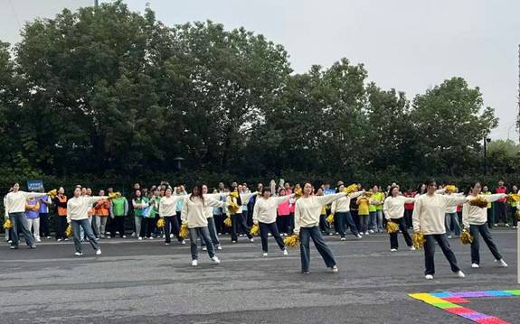 伴随着激昂的音乐声,一段激情四射的啦啦操表演瞬间点燃了现场气氛,青春洋溢的舞姿赢得了满堂喝彩,也标志着中科卫星空天信息产业基地首届运动会正式开始!